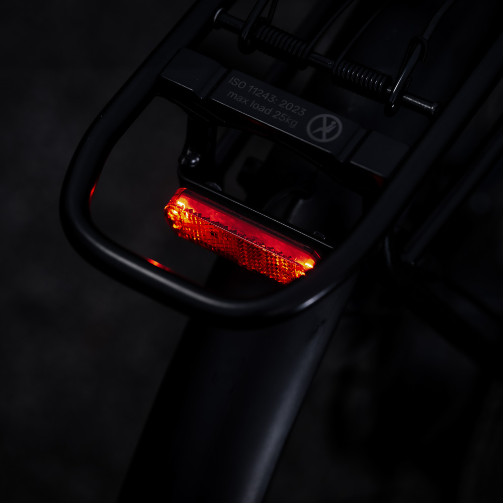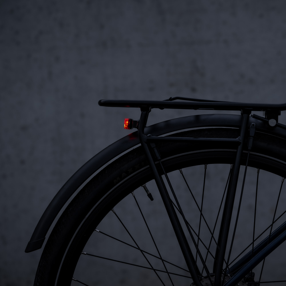 Dank 50-mm-Montageabstand ist das Rücklicht kompatibel mit den meisten gängigen Fahrrad- und E-Bike-Gepäckträgern. Es kombiniert moderne LED-Technologie mit robustem, wetterfestem Gehäuse – ideal für den täglichen Einsatz in Stadt, Freizeit und Pendelalltag.